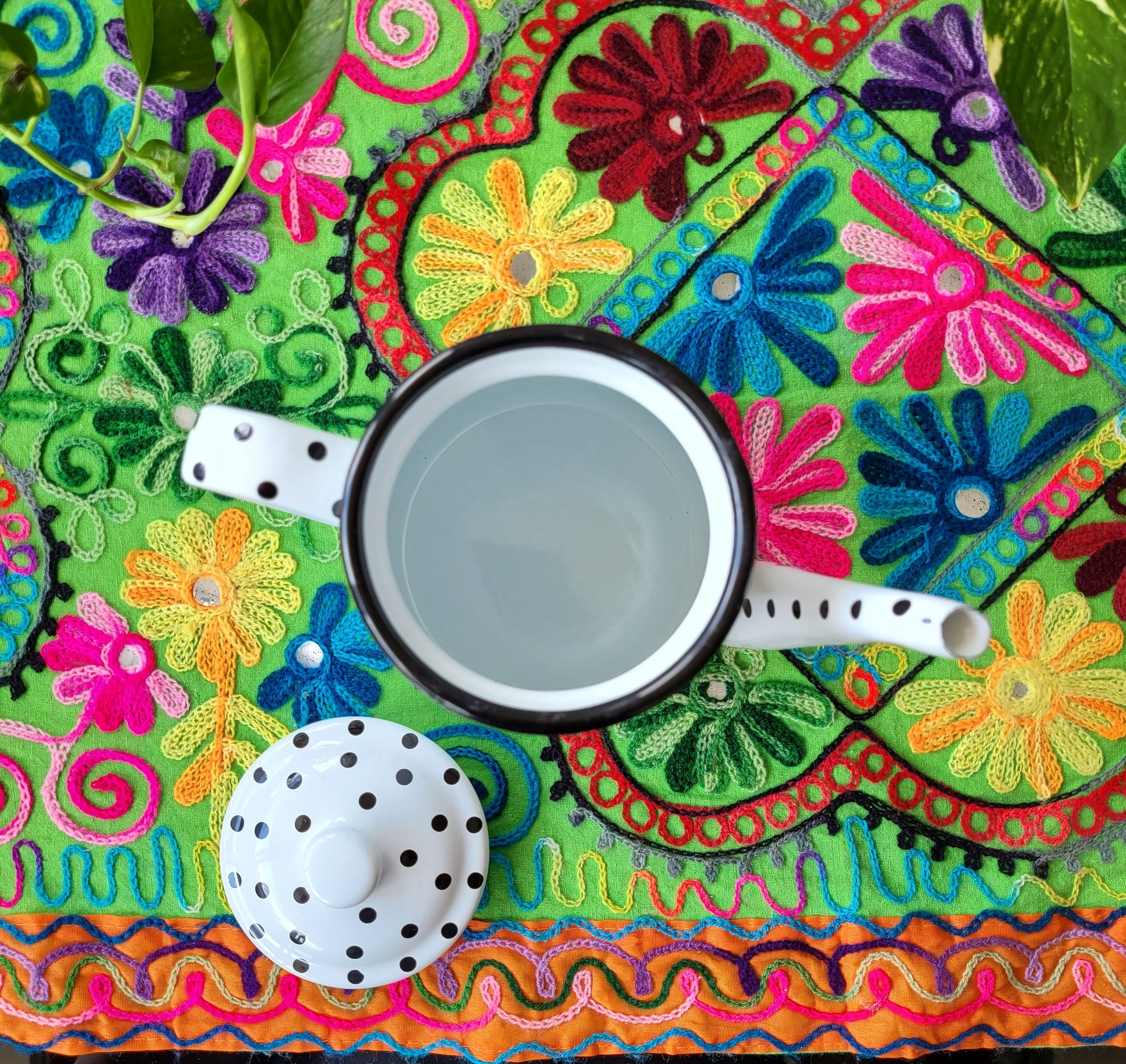 Esta tetera se destaca no solo por su elegante diseño, sino también por su durabilidad y facilidad de limpieza gracias a su capa de esmalte. Perfecta para una jornada relajante o una reunión con amig@s.