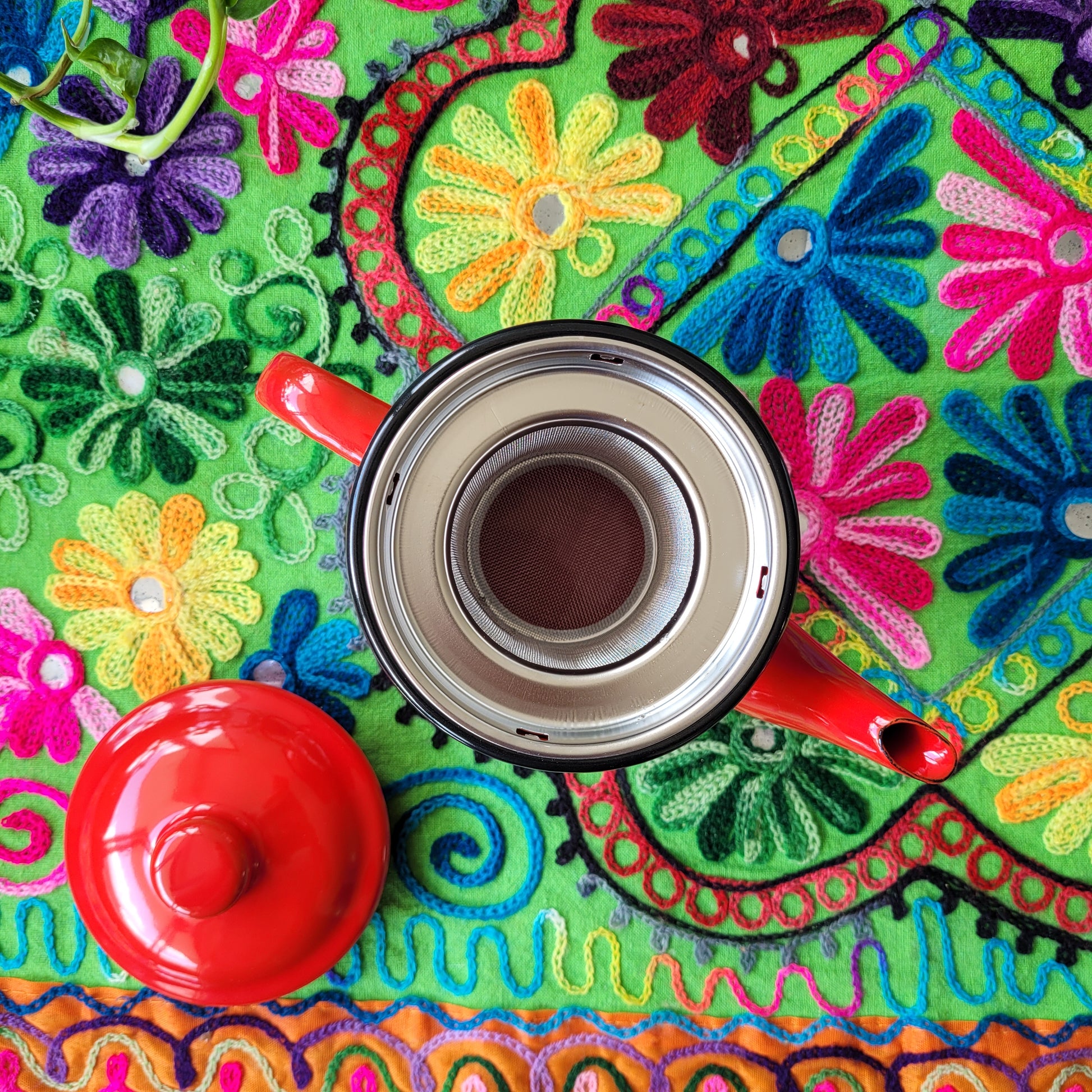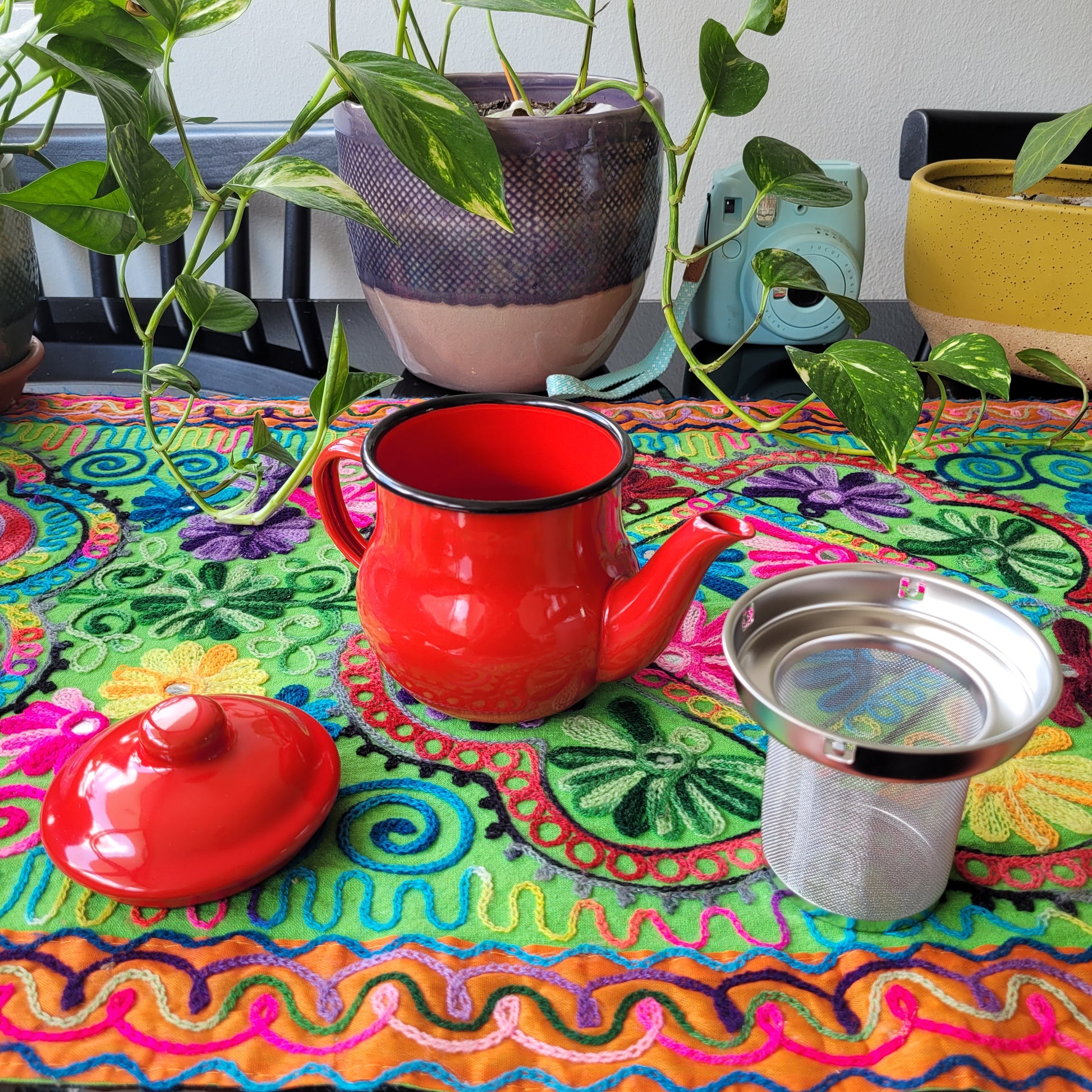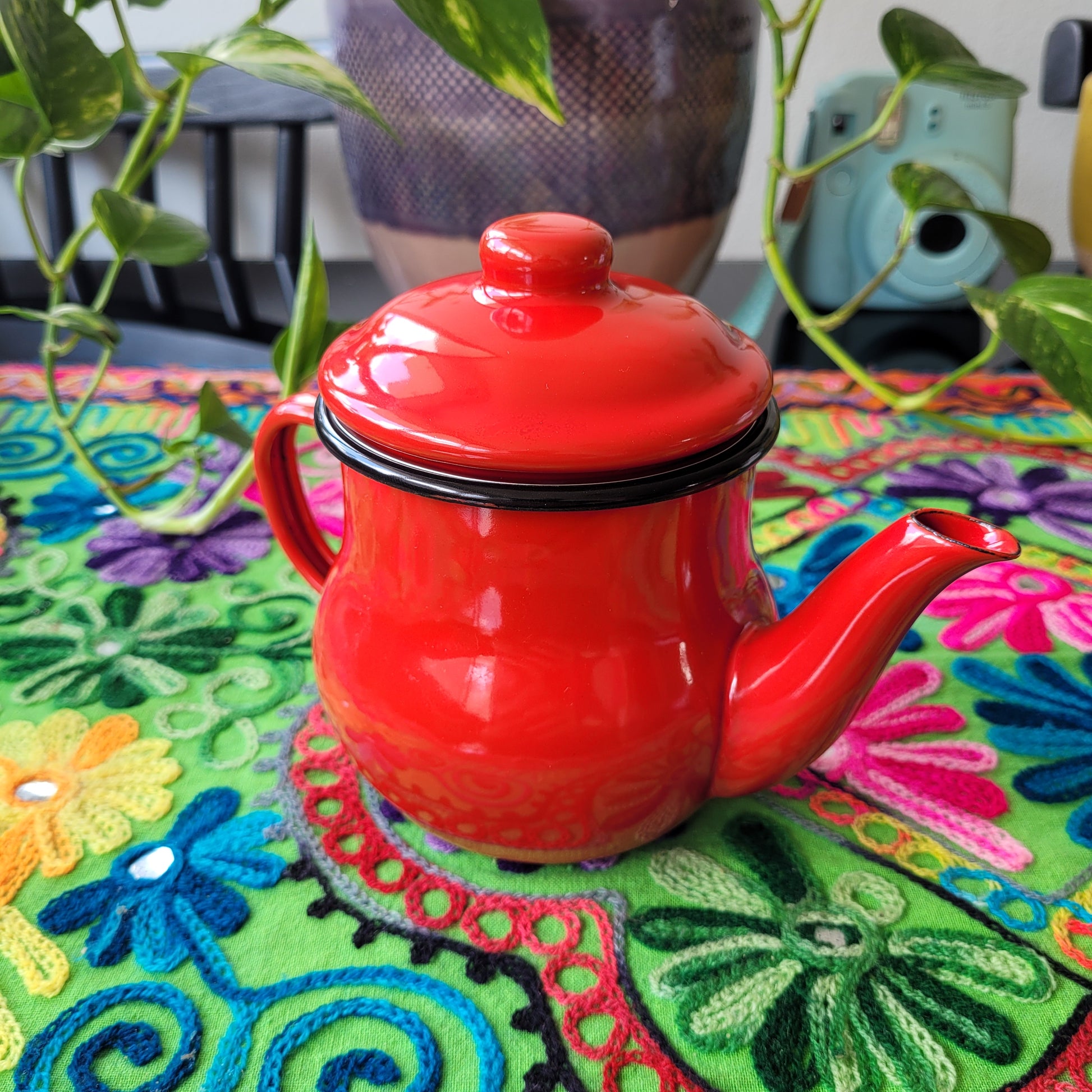 Tetera Enlozada con Infusor, Diseño Color Rojo