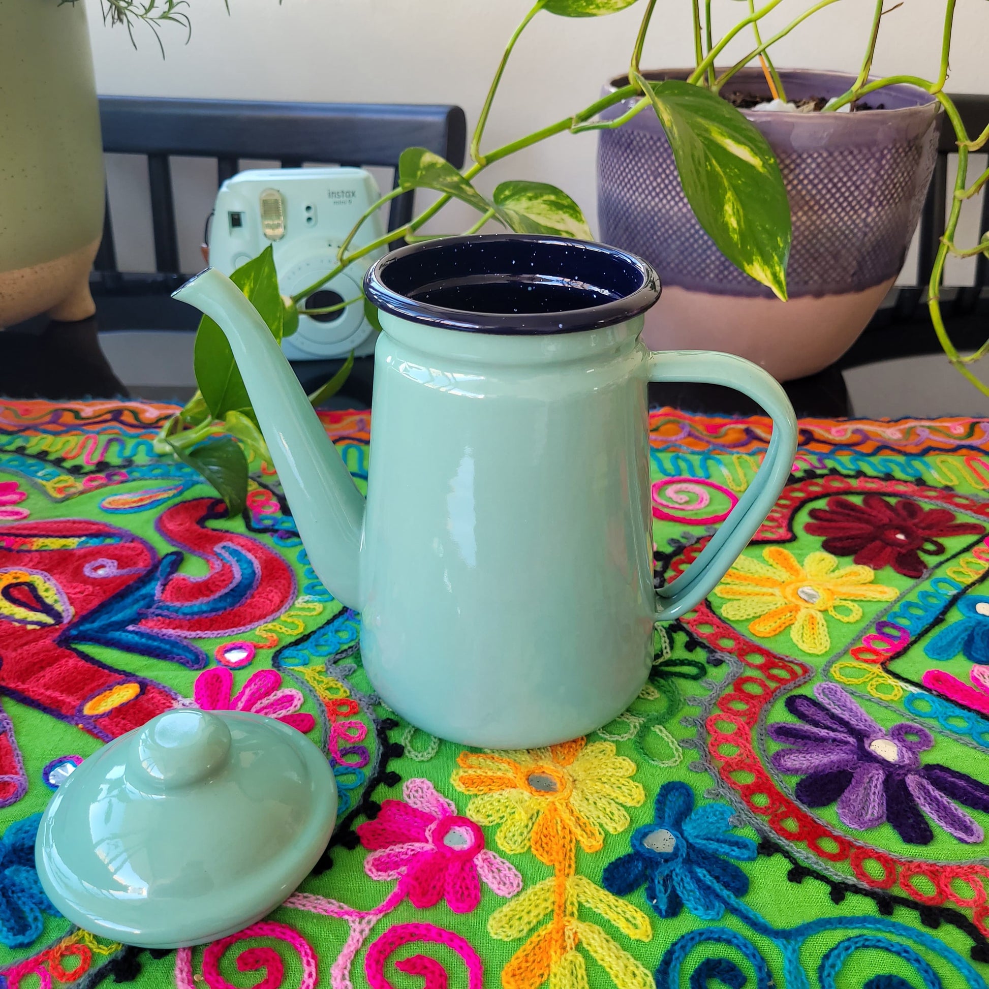 Esta tetera se destaca no solo por su elegante diseño, sino también por su durabilidad y facilidad de limpieza gracias a su capa de esmalte. Perfecta para una jornada relajante o una reunión con amig@s.