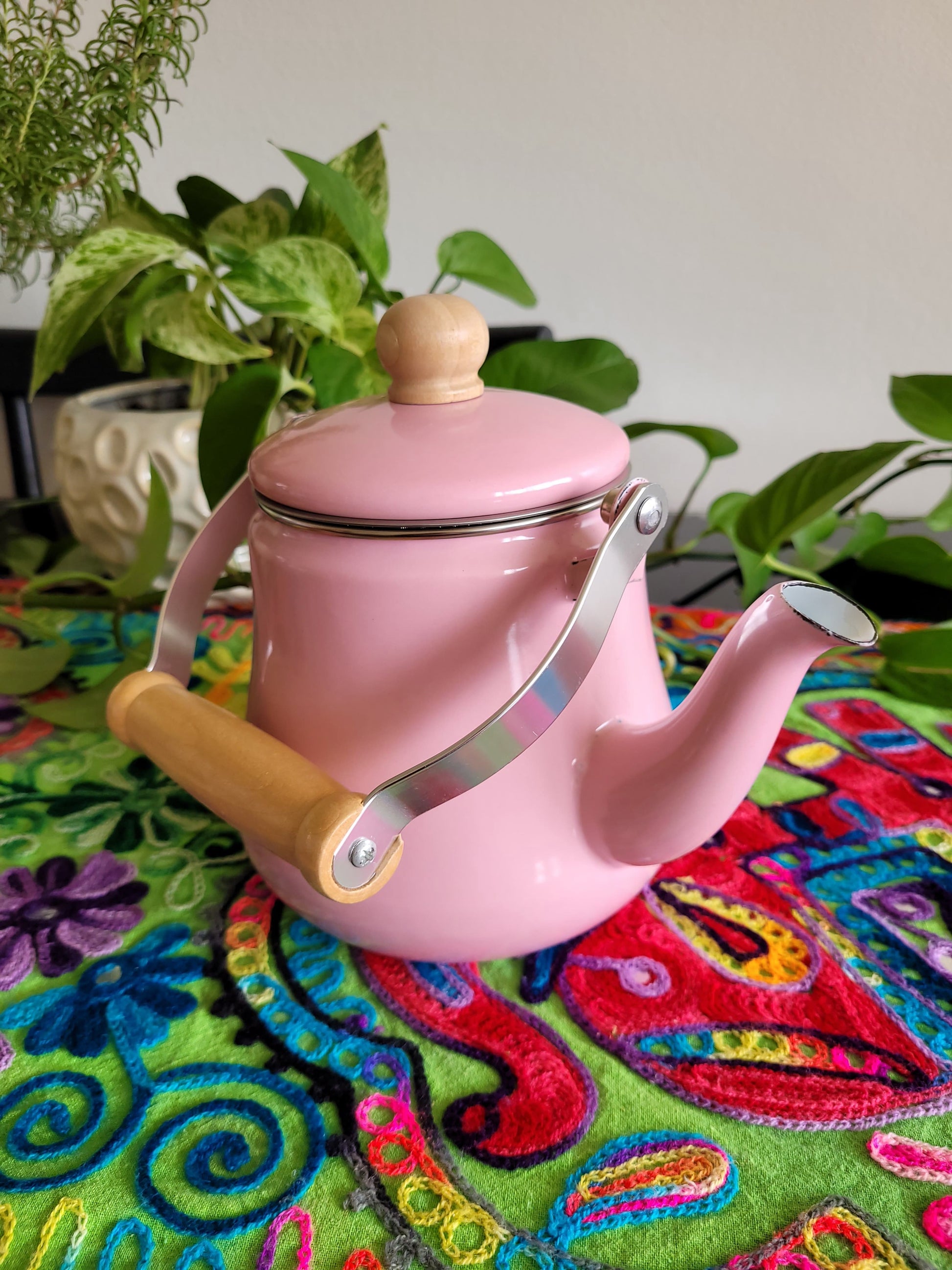 Tetera Enlozada Rosada con Infusor 1.5 cc